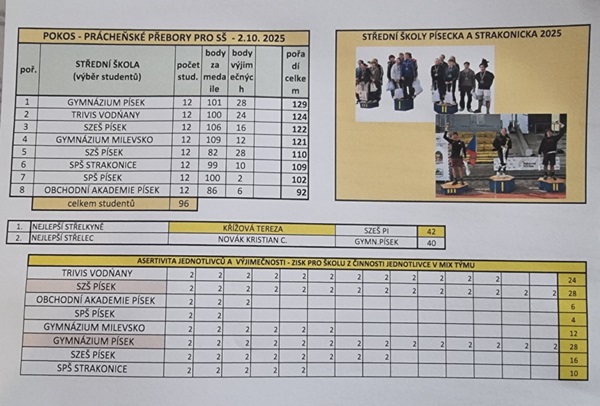 a 2.října 2025 Prácheňské přebory pro střední školy na atletickém stadioně v Písku